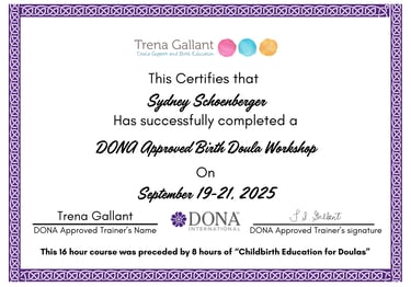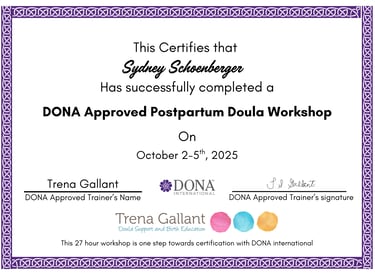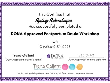 Welcome — I’m Sydney Schoenberger, a birth and postpartum doula in training through DONA International. Rooted Resilience was born from a deep passion for helping families grow with confidence, connection, and compassion.